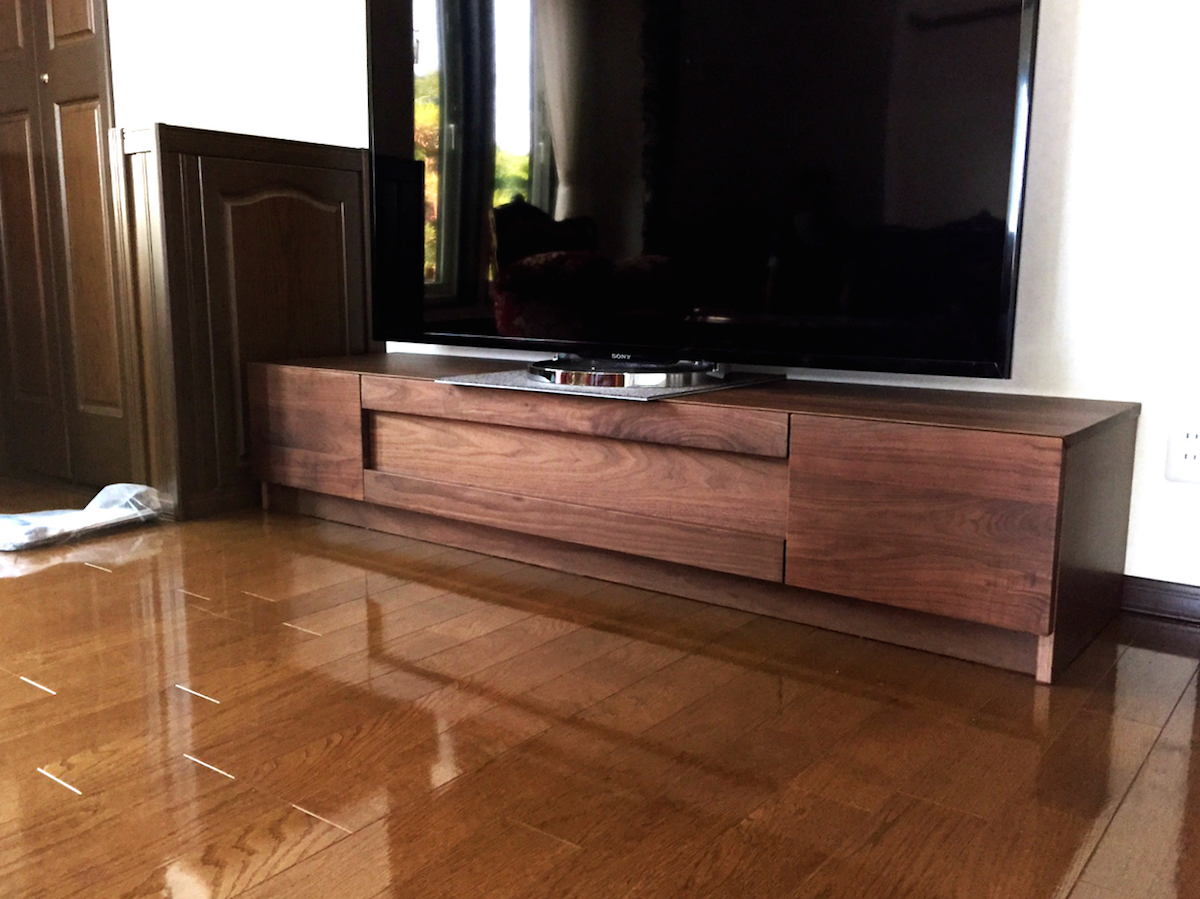 テレビボードはブラックウォールナット無垢材でお造りしました。