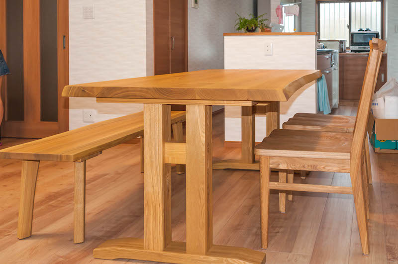 オイル塗装の45㎜厚天板が存在感たっぷりです!